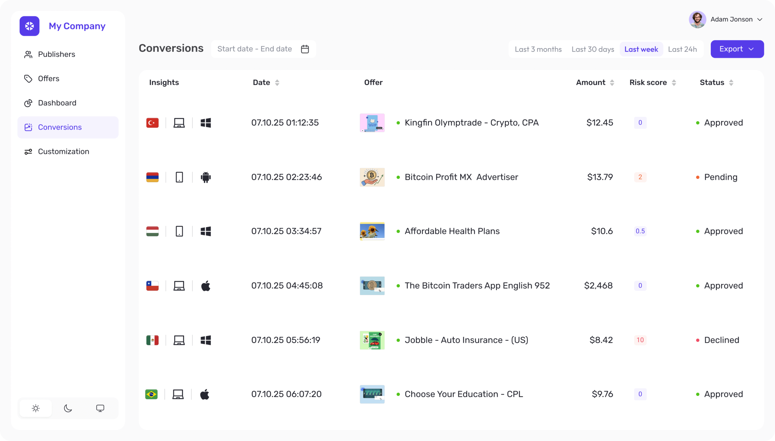 Set payout rates and modes. based on traffic and publisher quality to minimize the risk and maximize ROI