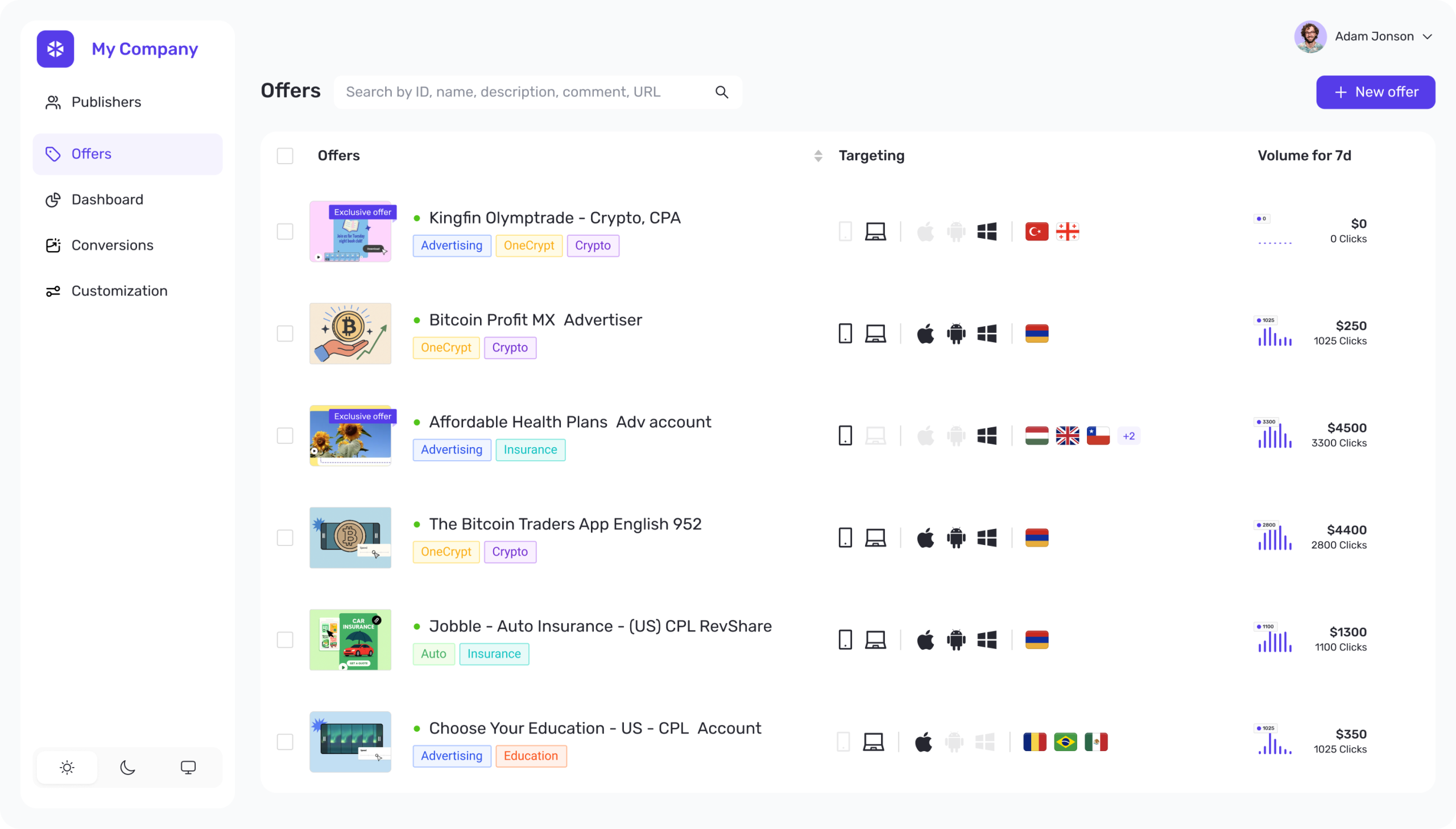 Transfer existing advertiser offer links to UCLIQ to route traffic to advertisers. This enables to use UCLIQ smart routing, reporting, cloaking, anti-fraud.